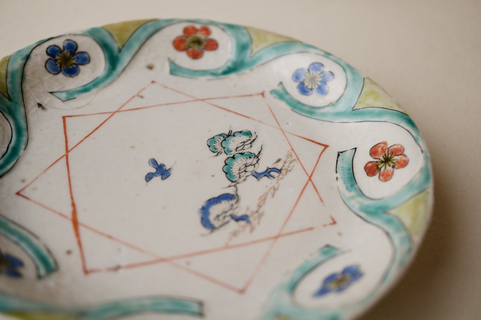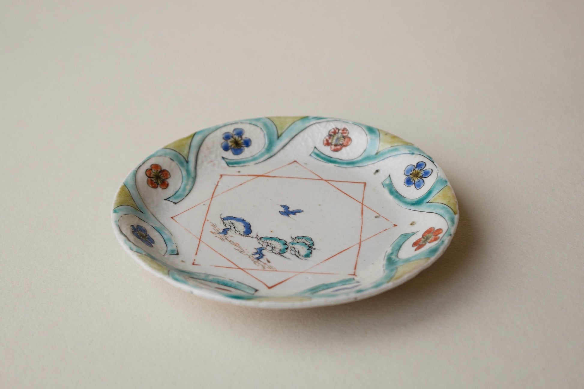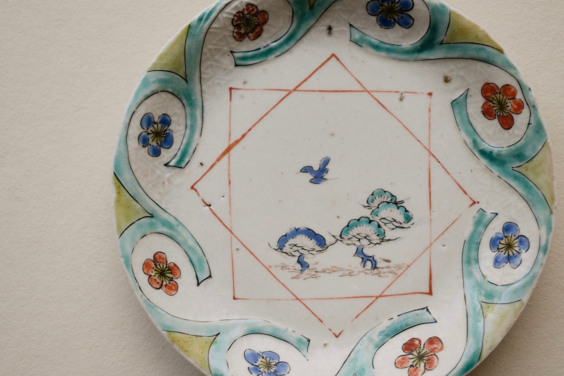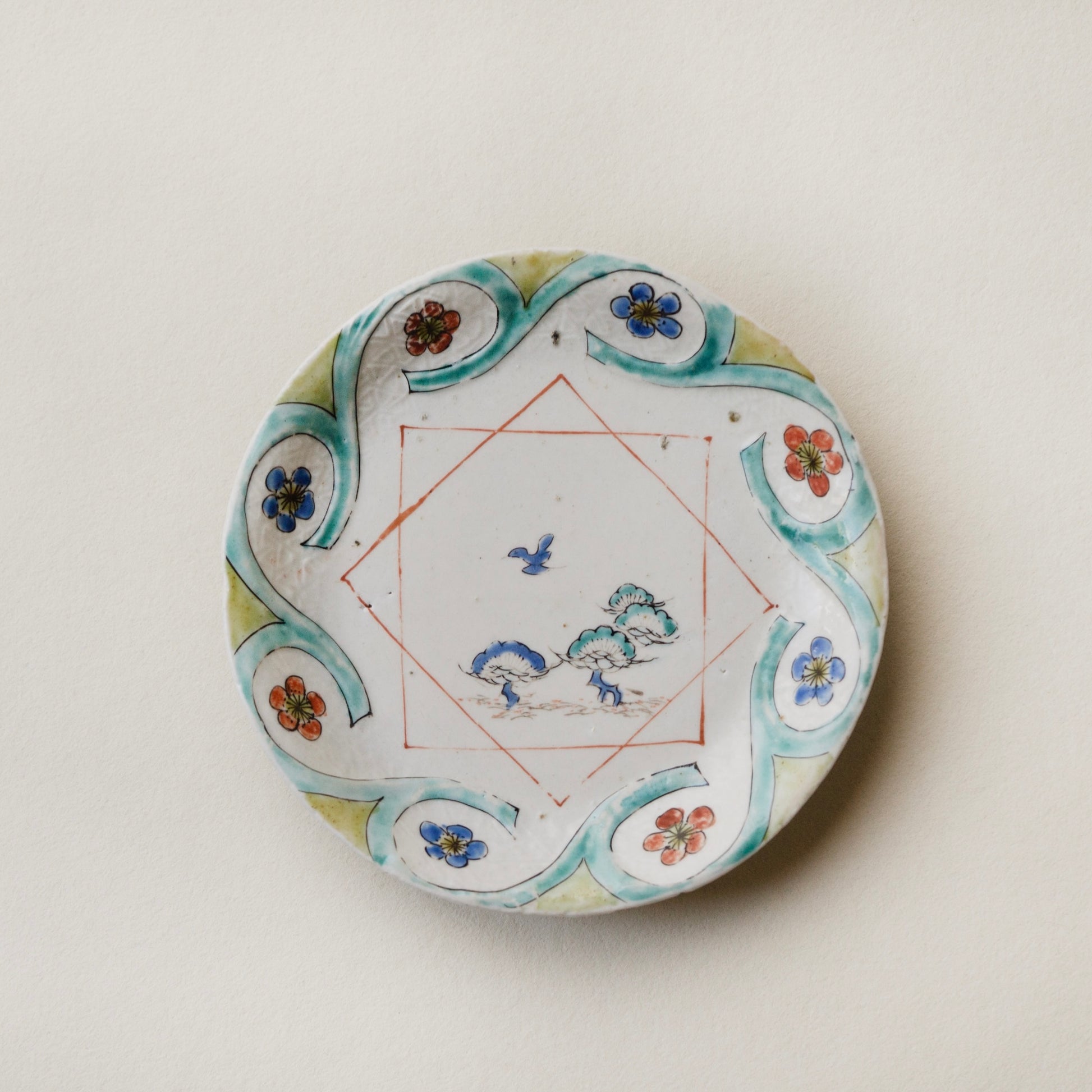 初期赤絵松梅鳥文皿
