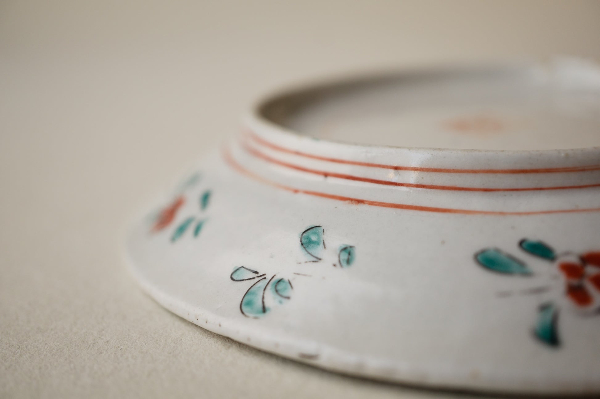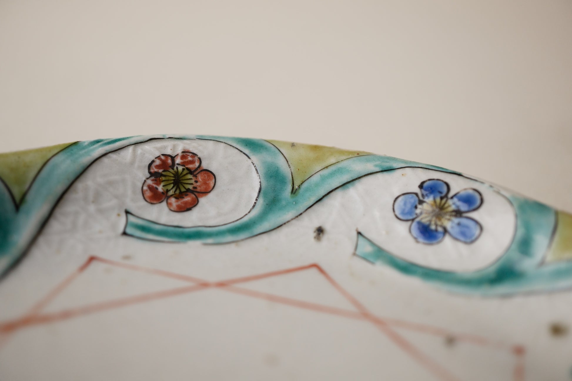 白磁としてはやや甘手で白濁した色になりますが、色絵との相性はむしろ好ましく、功を奏したものと評することもできそうです。