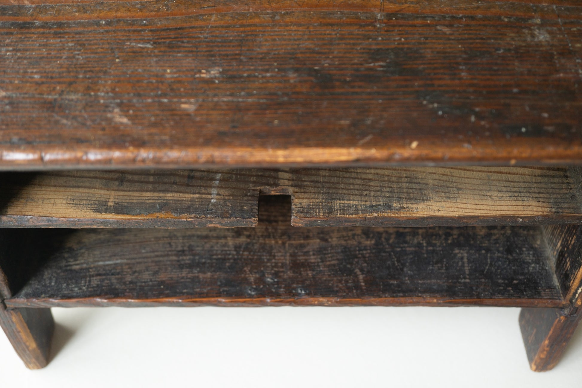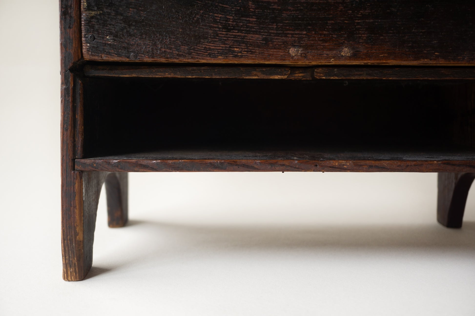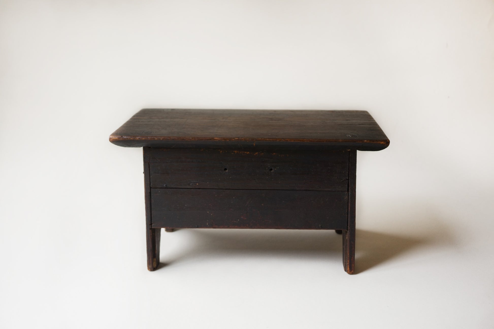 李朝家具で本歌と呼ばれる古い書案(文机)は数が少なく、またこのように小さな座卓ともなると一段と見かけないものになります。朝鮮家具の素朴さのある形に木味は上々で、書案と言いながら長らく花台に使われていたものと思われます。