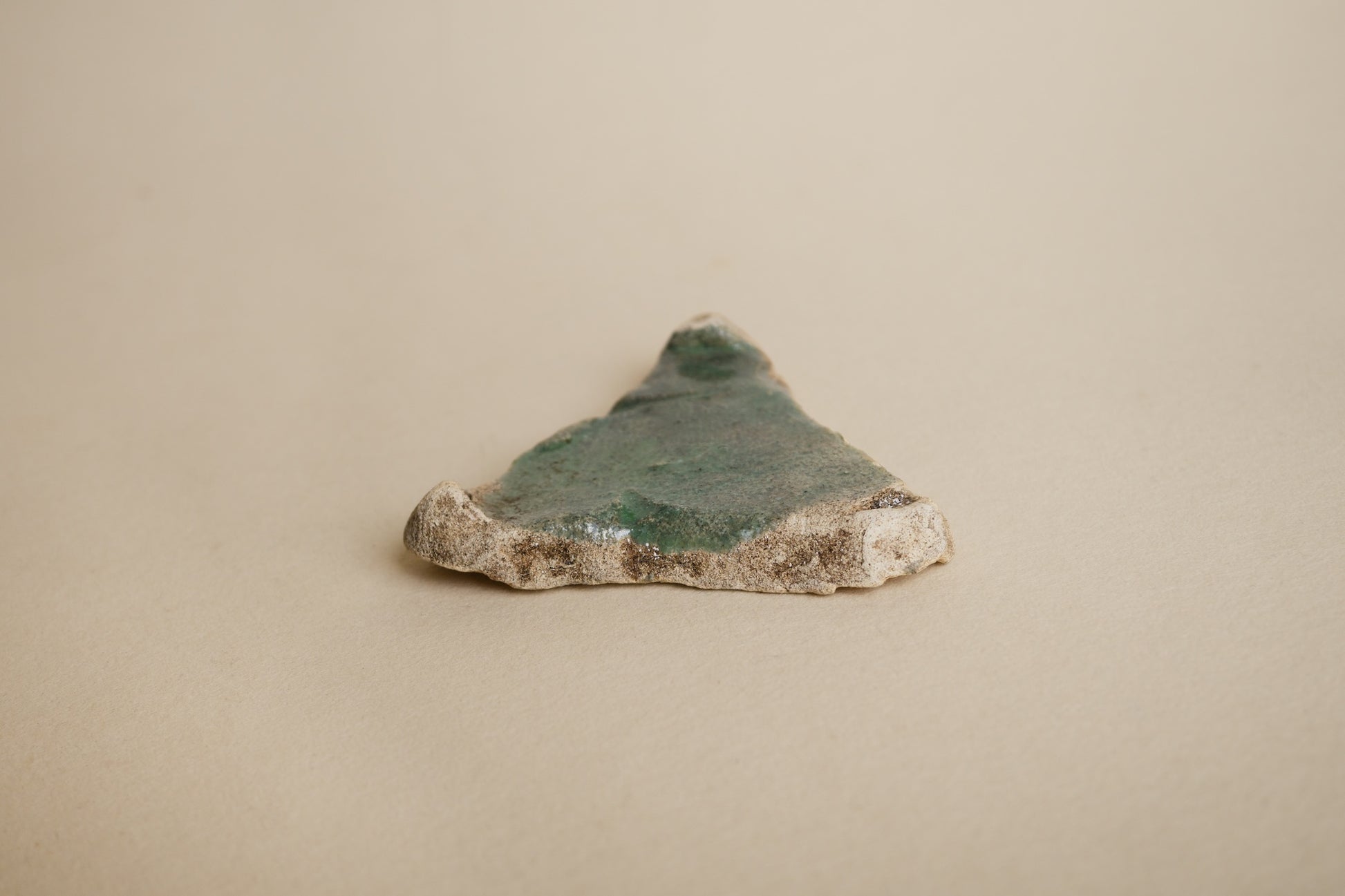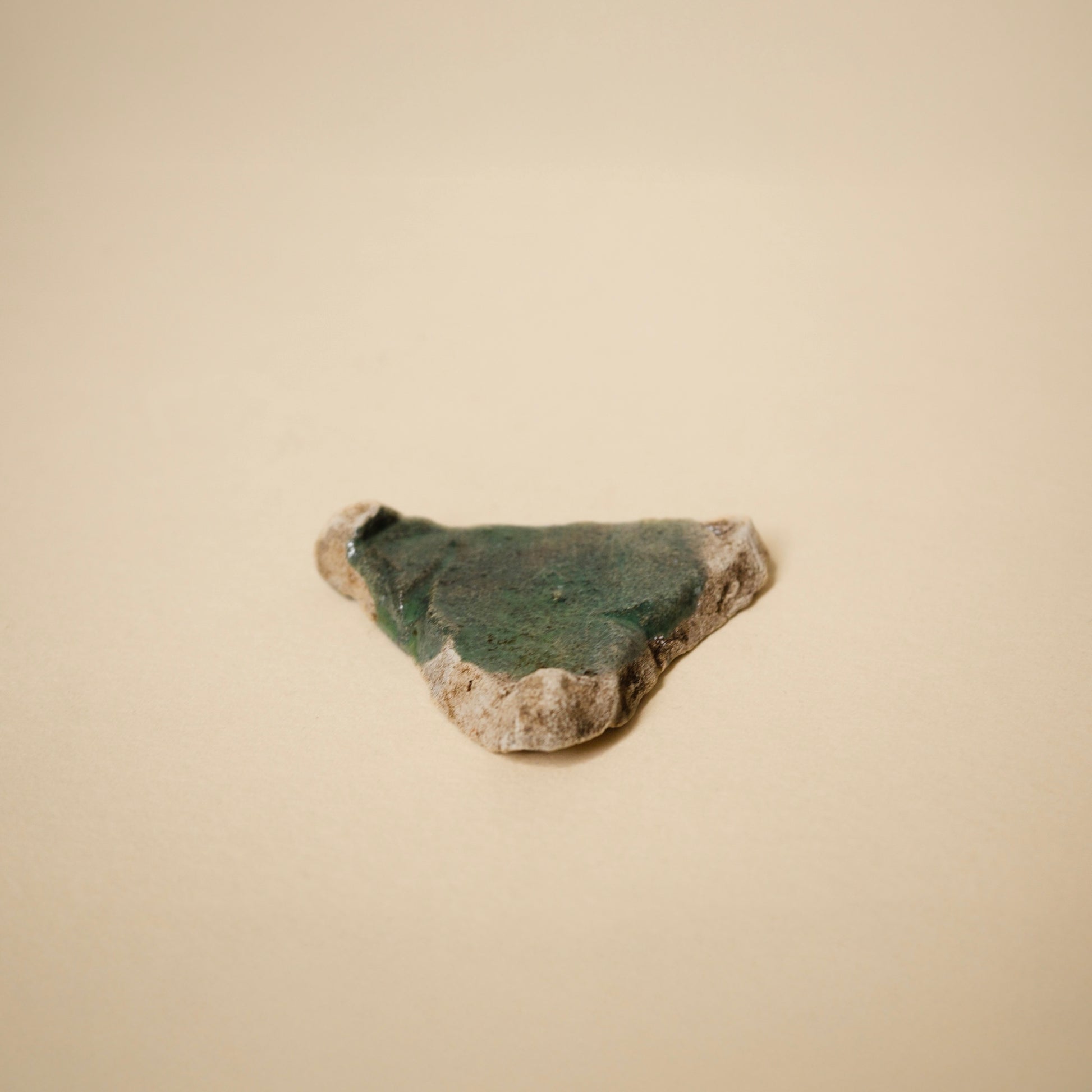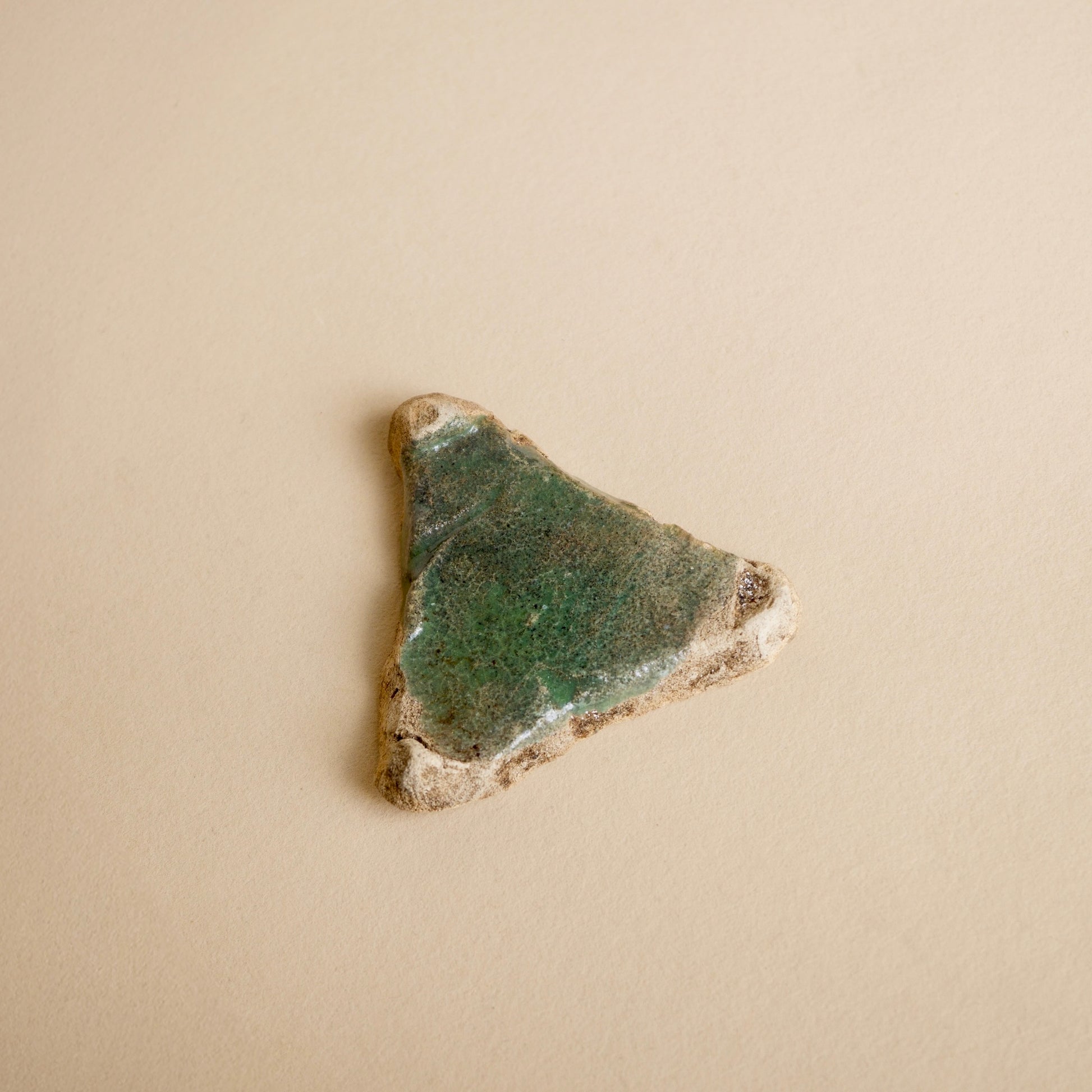窯の中で使われる実用の道具で、もともと製品として流通するものではないためか、オランダの窯道具などはあまり見かける機会もなく、残るもの自体が少ないのかもしれません。おおよそが直線と見える中に曲線の輪郭が交じり、硝子質の釉薬が合わさる様子はナイル河デルタ(三角洲)のようでもあります。