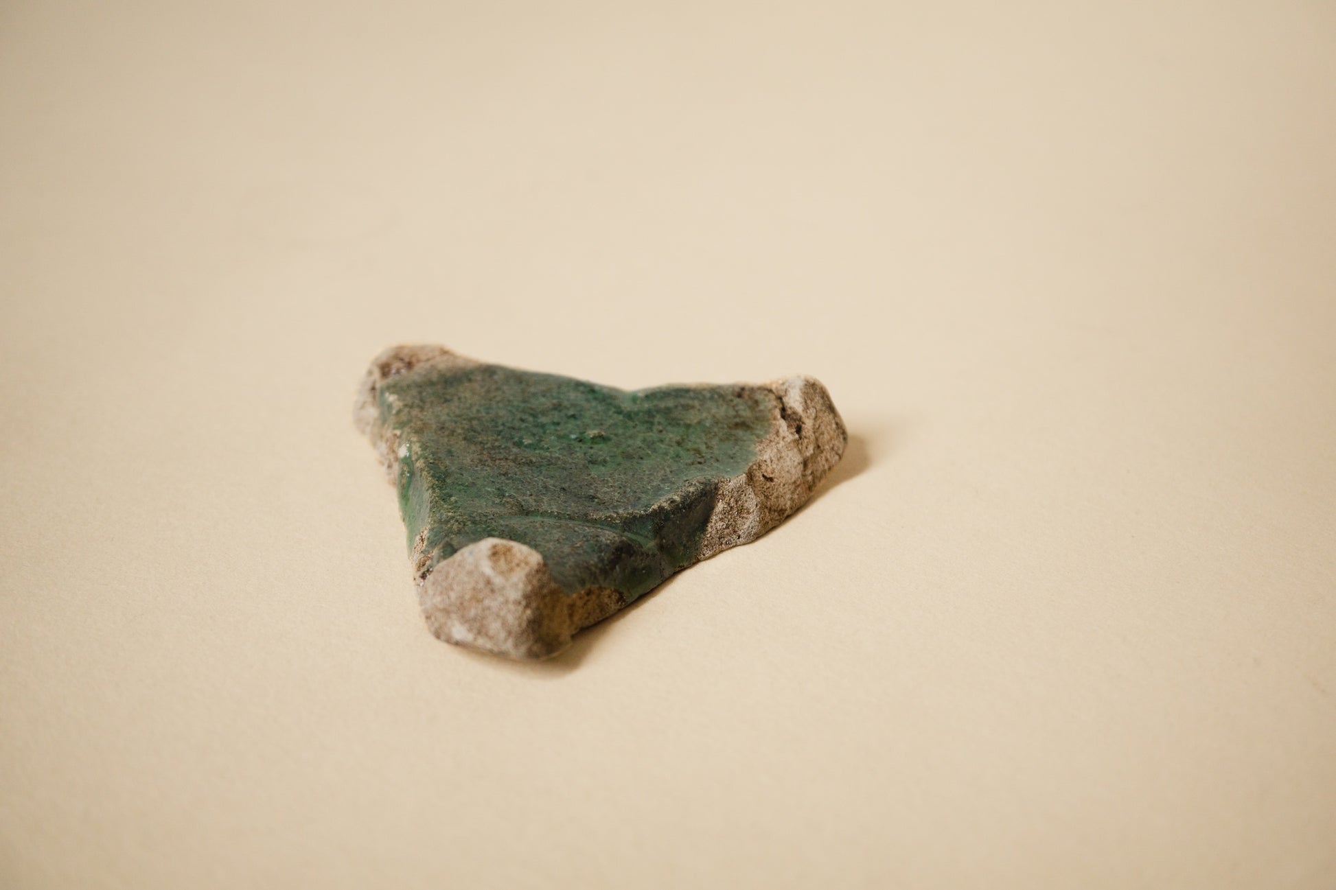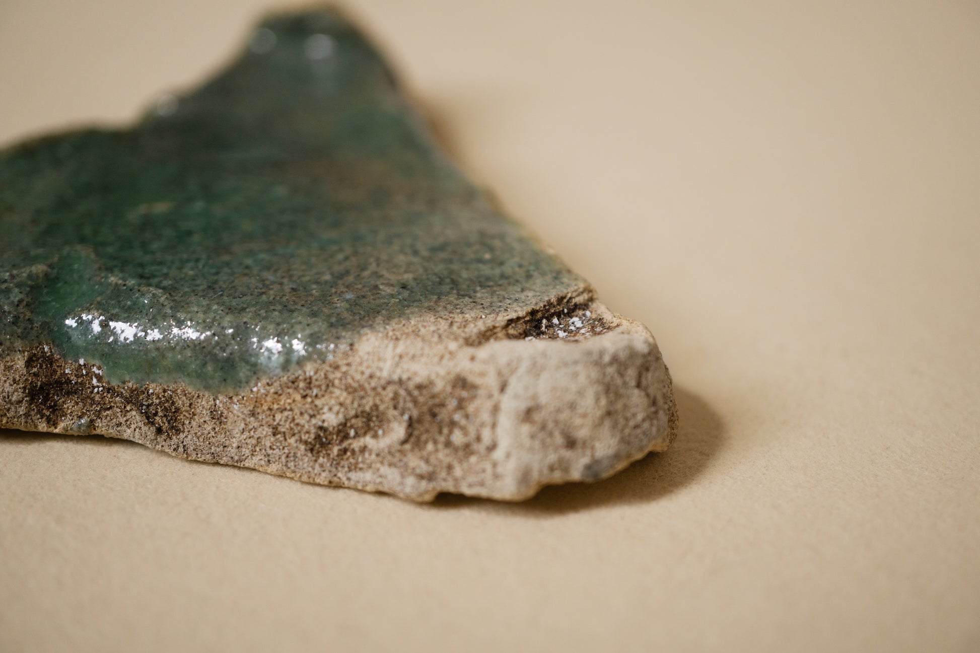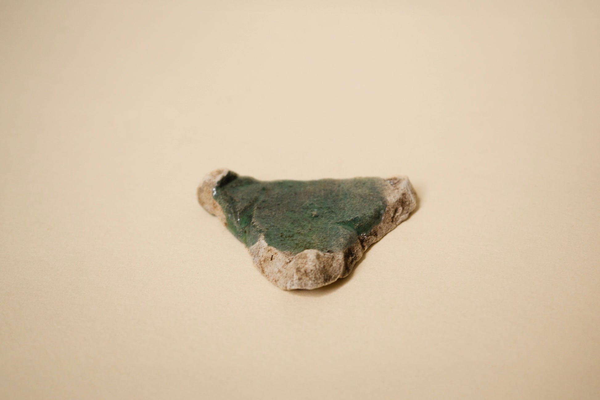 窯の中で使われる実用の道具で、もともと製品として流通するものではないためか、オランダの窯道具などはあまり見かける機会もなく、残るもの自体が少ないのかもしれません。おおよそが直線と見える中に曲線の輪郭が交じり、硝子質の釉薬が合わさる様子はナイル河デルタ(三角洲)のようでもあります。